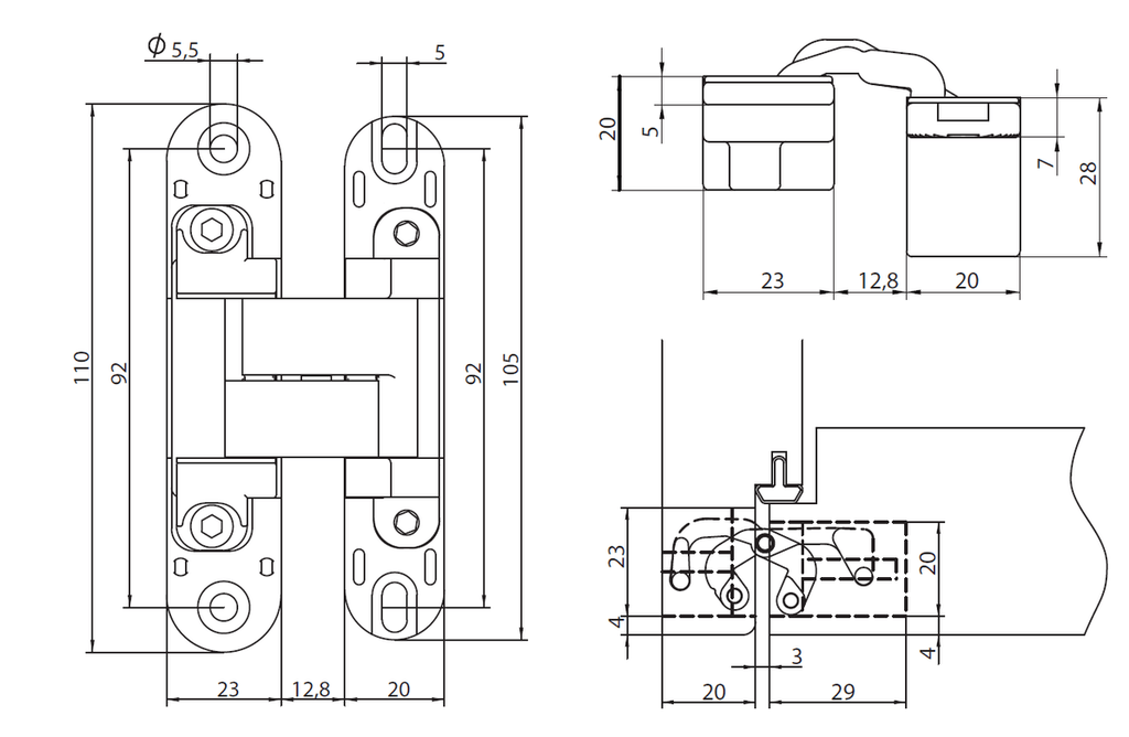 Скрытые петли MORELLI с 3-D регулировкой HH-19 SC Цвет - Матовый хром