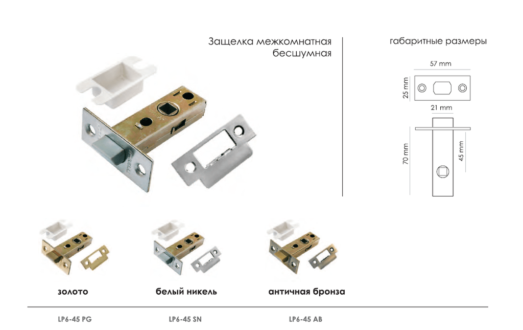 Защелка межкомнатная MORELLI LP6-45 AB Цвет - Античная бронза